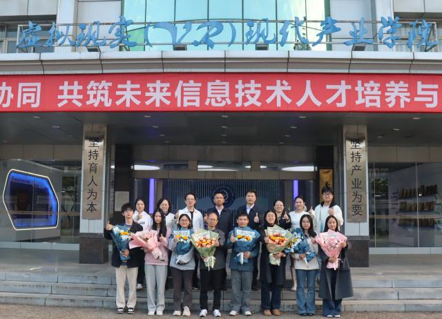 现场气氛热烈,院领导为获奖团队送上鲜花,向他们表达了热烈的欢迎与衷心的祝贺。团队成员纷纷向学院的关心表达了感谢,表示此次优异成绩的取得离不开学校和学院的全力支持,更凝聚着指导教师的悉心指导与团队成员的日夜钻研,未来将继续秉持创新精神,深耕专业研究。