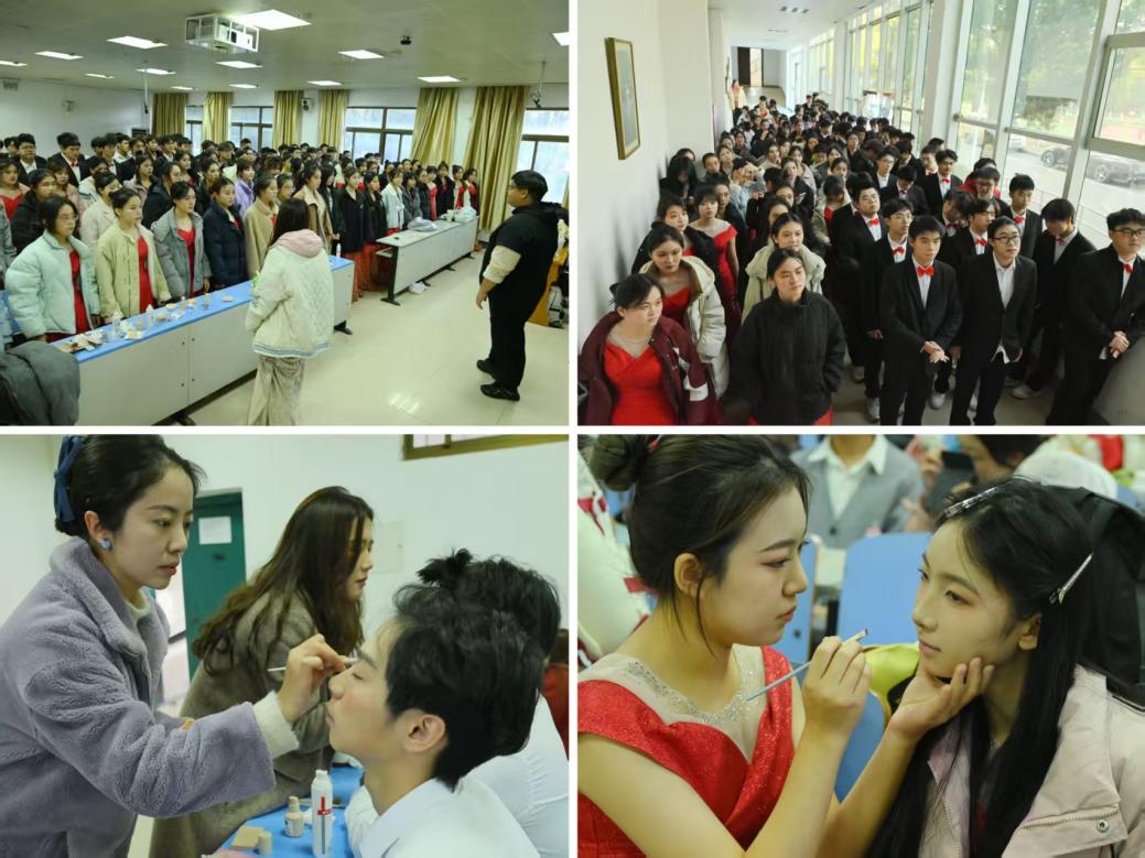 台上的精彩绽放,离不开幕后团队的全力支撑。项目组统筹全局,全程协调各项事务,确保各环节衔接有序。文艺部统筹规划后勤组,妆造组,宣传组,摄影组等各组工作人员工作内容,使演出准备工作迅速且有序推进,分工明确并全力以赴,默契合作,保障了备赛和演出环节的顺利推进。
