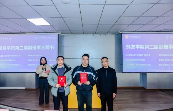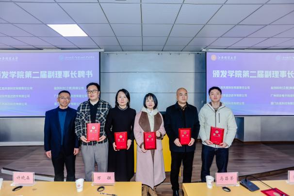 随后,大会审议并全票通过《学院2023—2025年工作报告》《新增理事单位名单》《新增理事会成员及第二届理事会成员名单》。现场为新一届理事会成员颁发聘书,标志着学院产教融合“朋友圈”进一步扩容,政校企协同发展合力持续凝聚,为后续深化合作、资源整合筑牢了组织保障。