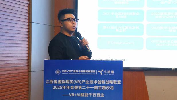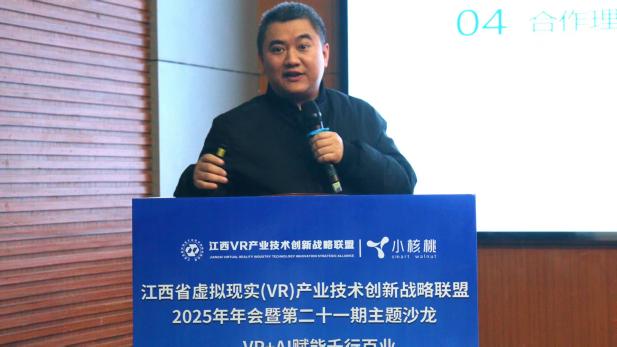 论坛于下午开始,谢花林副校长首先发表致辞,深刻阐释了数智时代VR产业发展的机遇与挑战,与校企双方以论坛为纽带,深化合作、携手共赢。