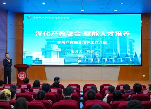 院长万征在《深化产教融合赋能人才培养》报告中系统总结了学院专业建设、校企合作等方面的阶段性成果,并结合VR产业发展趋势,阐述了“全周期产教融合”培养体系的构建路径,重点介绍了五大产教融合特色班与技能强化培训计划,强调要持续推动人才培养与产业需求精准对接。