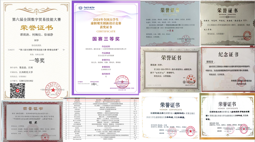 学海深耕,他潜心钻研专业知识,加权成绩稳居专业前6%,以扎实学识为科研与实践筑牢底气;科研竞赛,他以创新实干勇攀实践高峰。立足专业深耕科创,斩获全国大学生虚拟现实创新设计大赛国家级三等奖,完成两项校级重点大创项目并结项,获软件著作权4项,同时参与学院老师科研组,锤炼实操本领;学生工作,他以担当尽责践行服务初心。作为学生骨干,他恪尽职守、高效履职,全力搭建师生沟通桥梁,用心服务师生,先后获评优秀学生、优秀团学骨干、公益之星,履职表现广受认可;实践奉献,他以热忱初心彰显青年担当。
